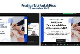 Direktorat Sumber Daya Manusia Universitas Gadjah Mada (DSDM UGM) pada 25 November 2025 menyelenggarakan Pelatihan Tata Naskah Dinas sebagai upaya meningkatkan kapasitas tenaga kependidikan dalam memahami standar penulisan, pengelolaan, dan pengarsipan dokumen resmi di lingkungan UGM.