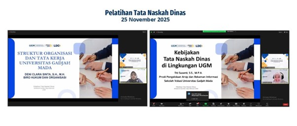 Direktorat Sumber Daya Manusia Universitas Gadjah Mada (DSDM UGM) pada 25 November 2025 menyelenggarakan Pelatihan Tata Naskah Dinas sebagai upaya meningkatkan kapasitas tenaga kependidikan dalam memahami standar penulisan, pengelolaan, dan pengarsipan dokumen resmi di lingkungan UGM.