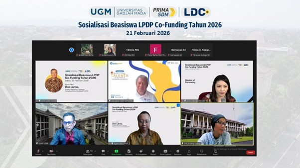 Direktorat Sumber Daya Manusia (DSDM) Universitas Gadjah Mada menyelenggarakan Sosialisasi Beasiswa Co-Funding Tahun 2026 sebagai bagian dari komitmen pengembangan kapasitas sumber daya manusia UGM melalui skema pendanaan kolaboratif bersama Lembaga Pengelola Dana Pendidikan (LPDP). Sosialisasi ini dilaksanakan secara daring pada 21 Februari 2026 dan dihadiri 143 dosen berbagai fakultas dan sekolah di lingkungan UGM yang antusias untuk memperoleh informasi terkait peluang studi lanjut melalui skema pendanaan kolaboratif..